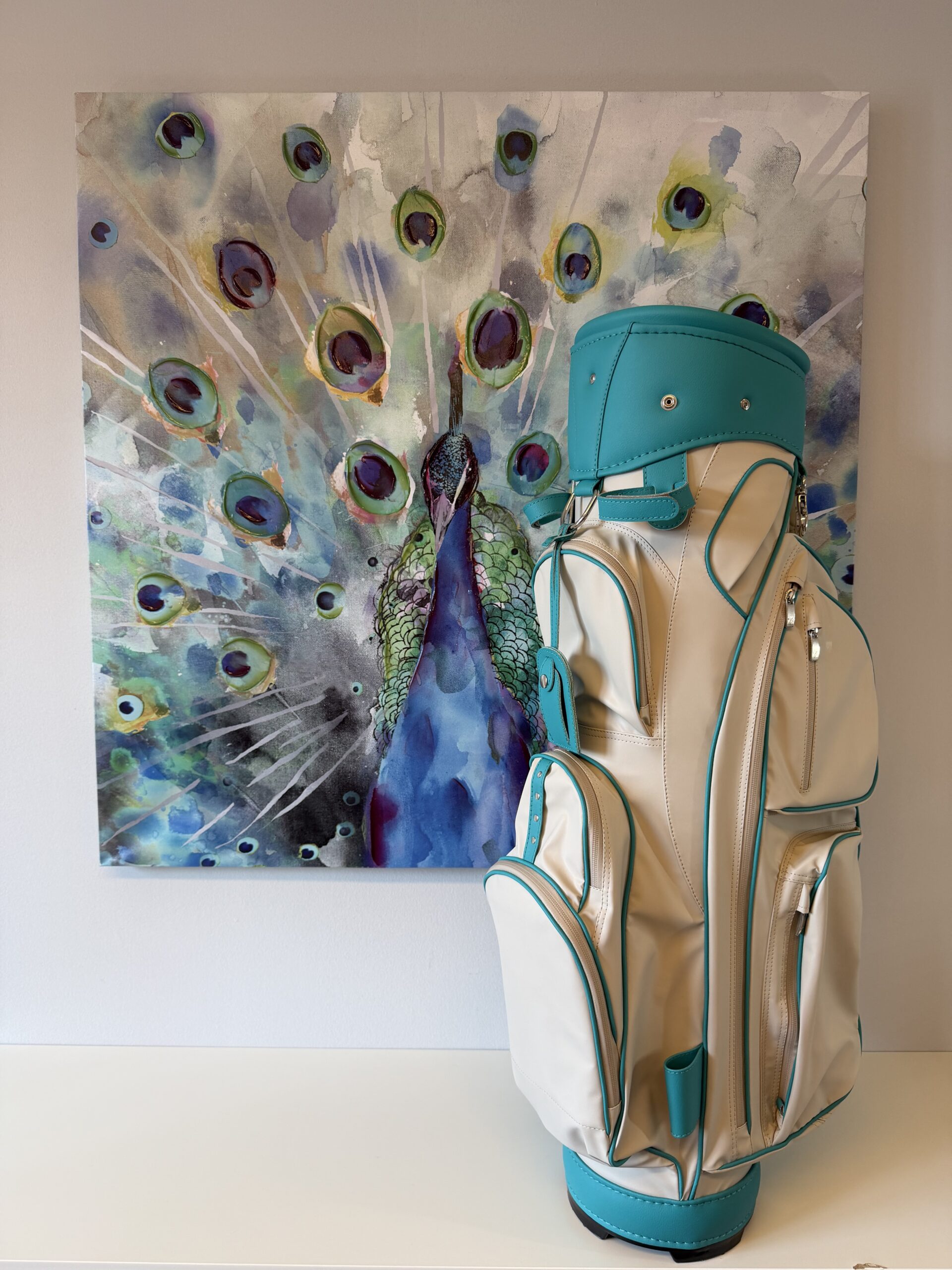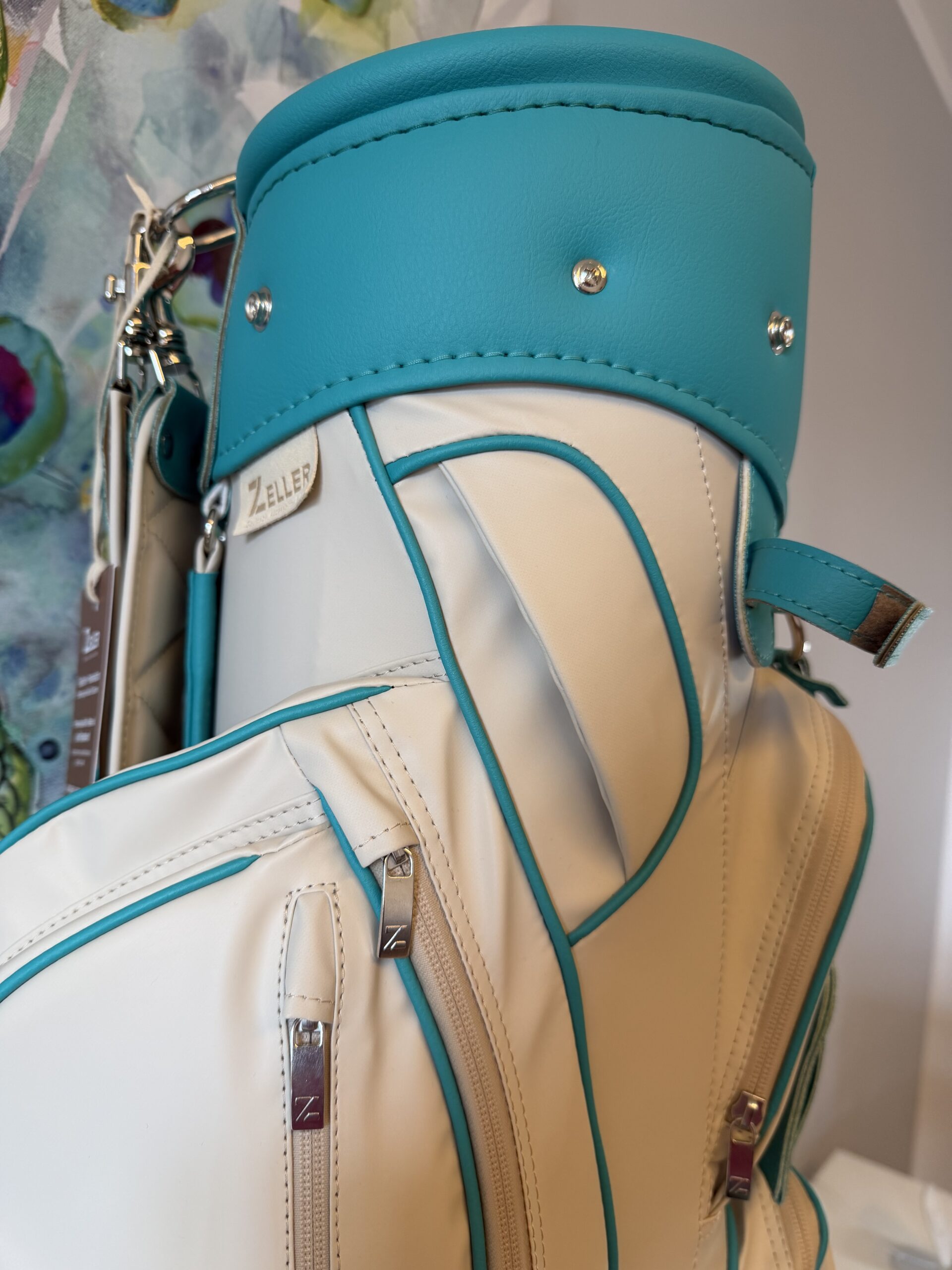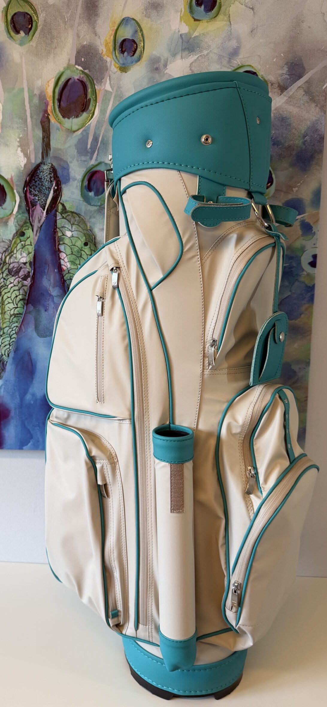 12erTeilung (am Boden fixiert), Regenschirmhalter, Karabinerhaken für Accessorybag, 1/2 Putterrohr mit Klett für Handschuh, gummierte Marken-Reißverschlüsse, Ring für Putztuch, gefüttertes Schmuck-/Handycompartment, Tee-Streifen auf der Frontseite, Getränkecooler, Taschenhaube, Schultergurt, Adressanhänger, Batterietasche, unterm Kopf links und rechts Handle, ohne Accessorybag