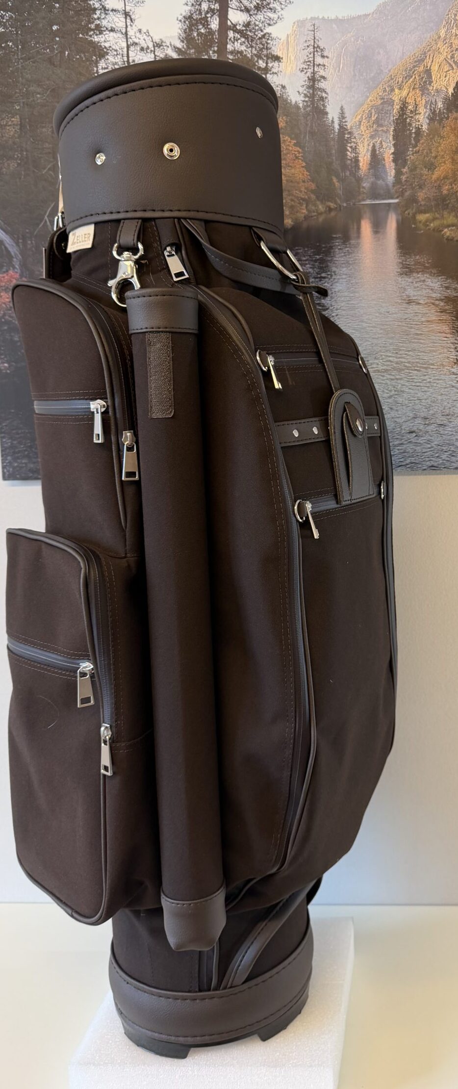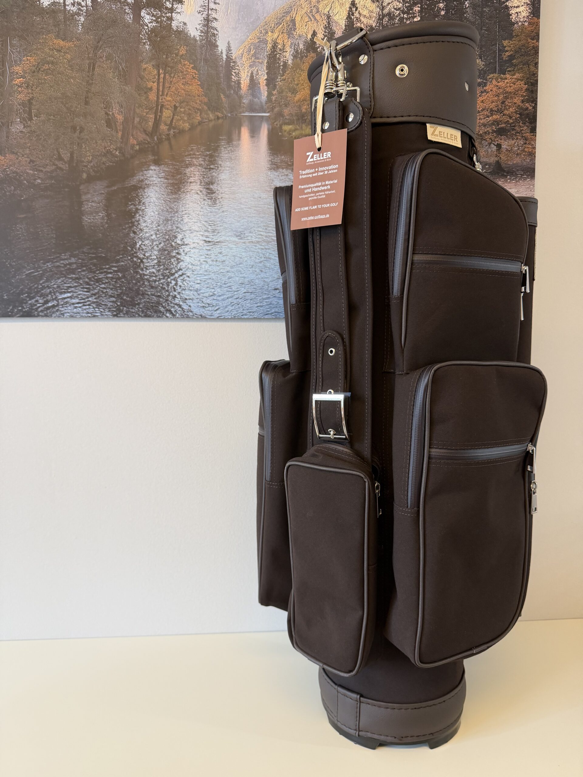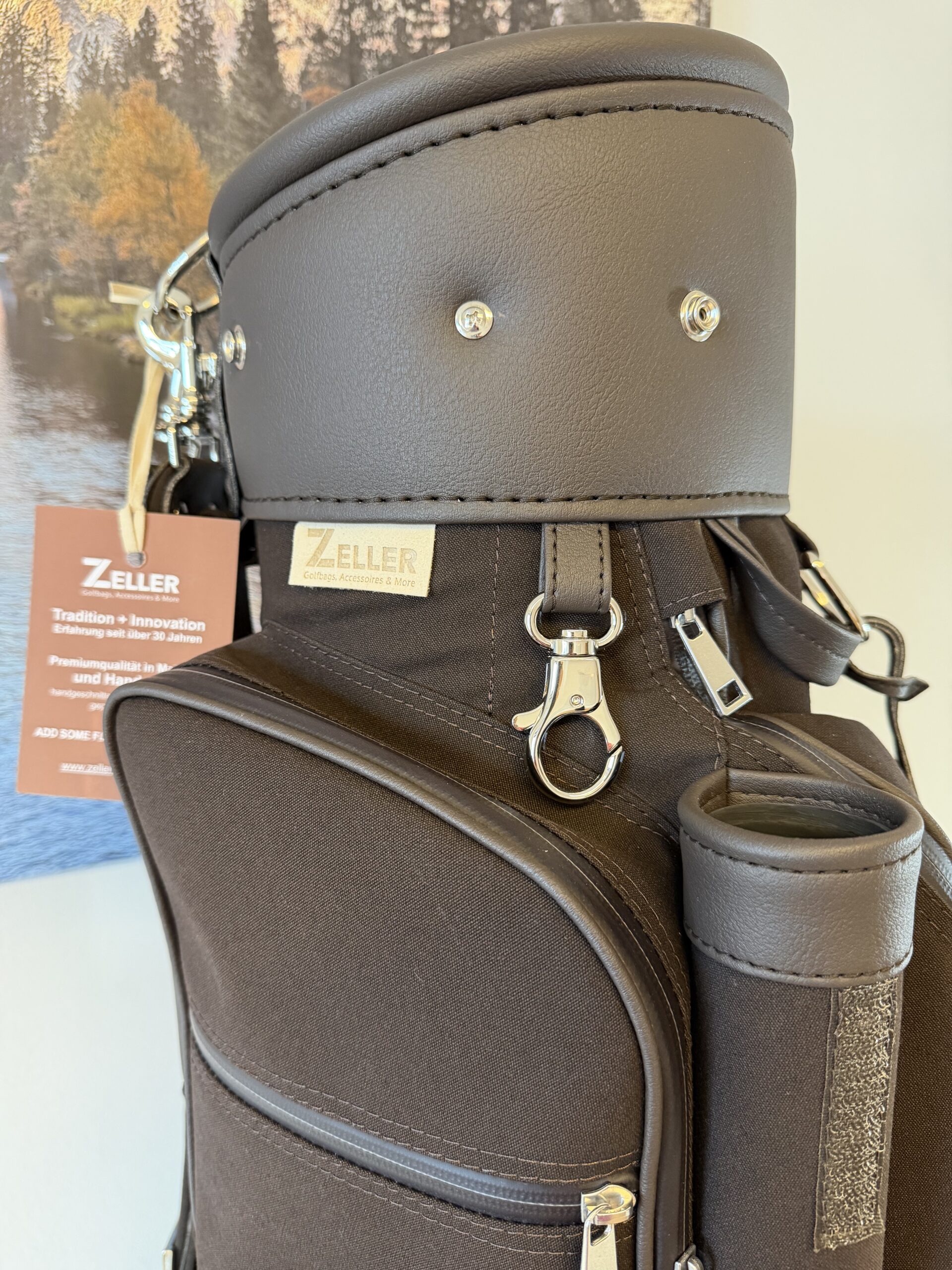 12erTeilung (am Boden fixiert), Regenschirmhalter, Karabinerhaken für Accessorybag, Putterrohr mit Klett für Handschuh, gummierte Marken-Reißverschlüsse, Ring für Putztuch, gefüttertes Schmuck-/Handycompartment, Tee-Streifen auf der Frontseite, Getränkecooler, Taschenhaube, Schultergurt, Adressanhänger, Handles oben und unten, Accessorybag, rückseitig Batterietasche