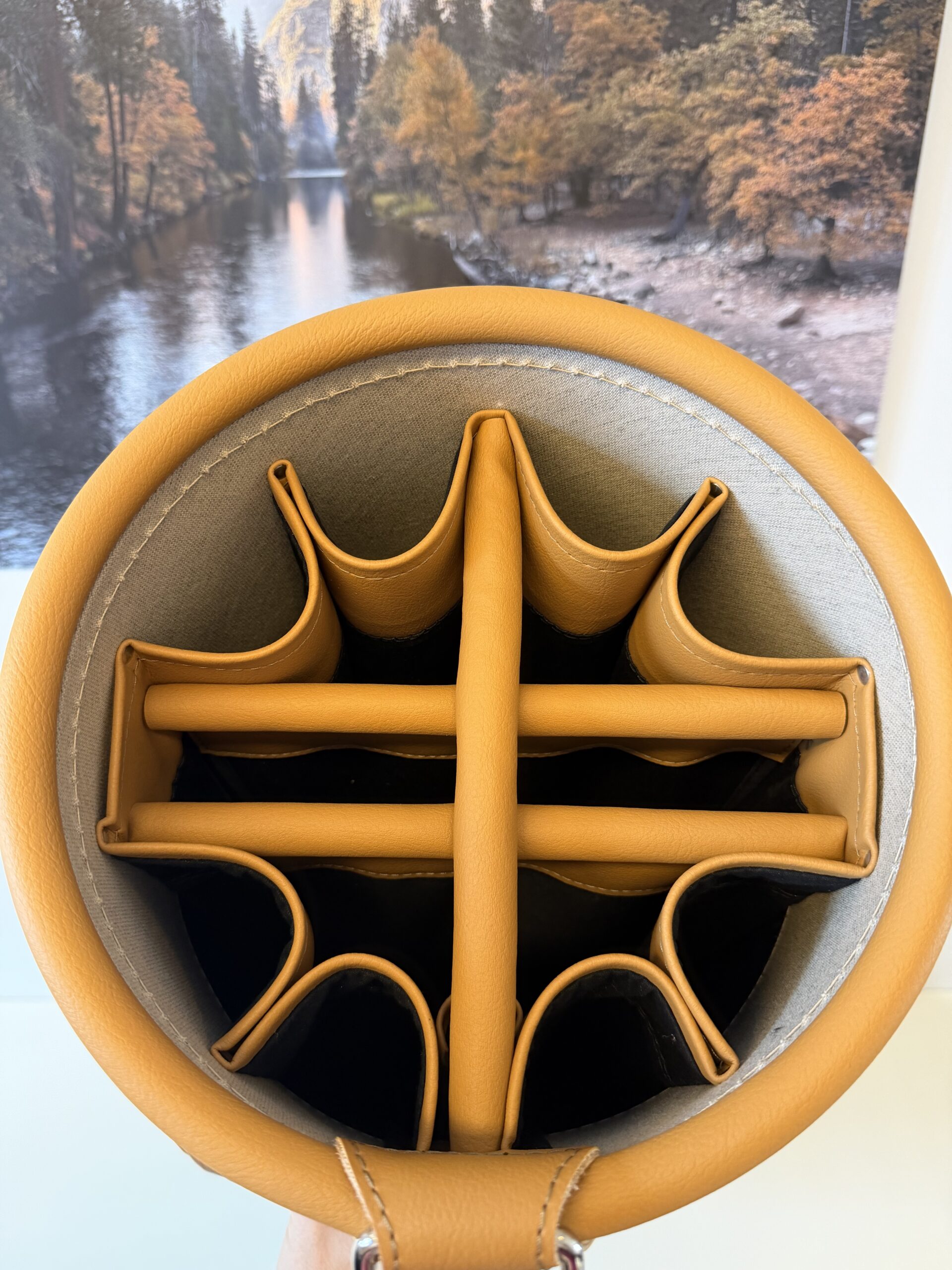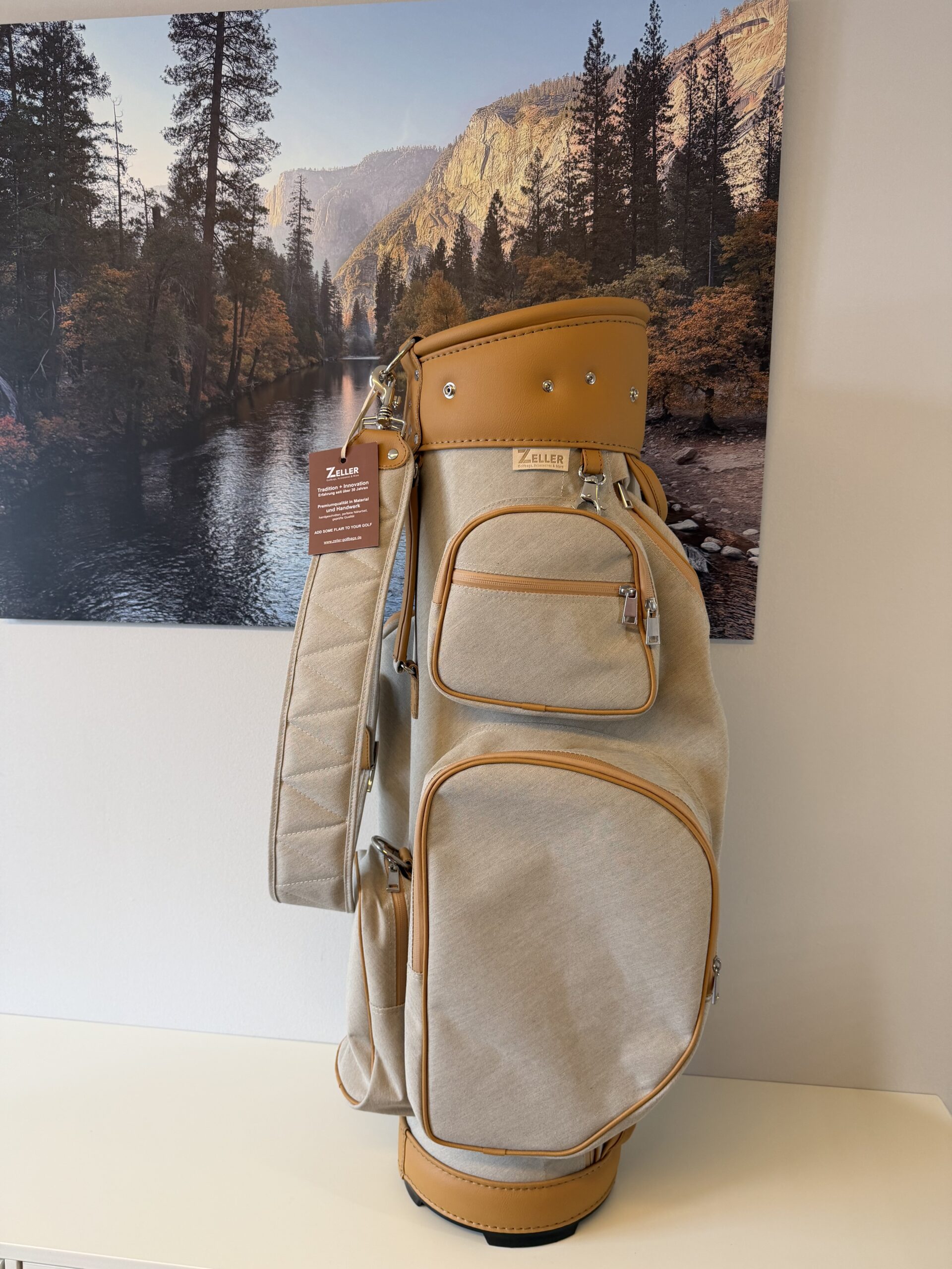 14erTeilung (am Boden fixiert), Regenschirmhalter, Karabinerhaken für Accessorybag, gummierte Marken-Reißverschlüsse, Ring für Putztuch, gefüttertes Schmuck-/Handycompartment, Taschenhaube, Schultergurt, Batterie- oder Balltasche,